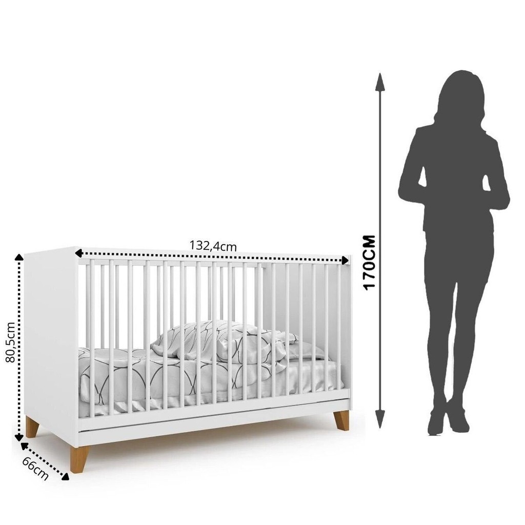 Com a chegada do bebê, é natural que a futura mamãe se preocupe com o seu conforto, segurança e bem estar. O berço além de bonito e confortável deve ser seguro, pois é nele que o bebê irá passar grande parte do seu dia. A Batrol Móveis possui vários modelos e cores e todos oferecem alta resistência com altos padrões de segurança. Estilo: Moderno Peso (kg): 27.4 Garantia: 03 Meses Portátil: Não Altura (cm): 80.5 Acabamento: Pintura UV Largura (cm): 66 Possui Pés: Sim Possui Portas: Não Altura dos Pés: 14.5 Possui Gavetas: Não Possui Rodízio: Não Suporta Até (kg): 50 Pintura Atóxica: Sim Profundidade (cm): 132.4 Tipo de Estrado: Removível Acompanha Móbile: Não Escala de Brilho: Brilhante Material dos Pés: Madeira Maciça Acompanha Colchão: Não Origem do Produto: Nacional Ambiente Principal: Quarto de Bebê Material Principal: MDP Possui Prateleiras: Não Material do Estrado: Madeira e MDF Sapatas Niveladoras: Não Sistema Anti-Refluxo: Não Tipo de Grade do Berço: Fixa Acompanha Cama Auxiliar: Não Altura do Estrado até o Chão: 42.8 Tipo de Madeira Maciça dos Pés: Eucalipto Estrado com Regulagem de Altura: Sim Acompanha Suporte para Mosquiteiro: Não Estrado Regulável em Quantas Posições: 3 Permite a Utilização de Cama Auxiliar: Não Marca: Batrol Móveis Cor do Produto: Branco Itens Inclusos: 1 Berço, Kit Ferragens e Manual de Montagem Cor Predominante: Branco Linha ou Coleção: Magia Multifunção Flex: Não Tipo de Certificado: INMETRO 002883/2025 Opções de Altura do Estrado: 17,2 - 30 - 42,8 Tamanho do Colchão Indicado (L x C): 130cm x 60cm x 12cm