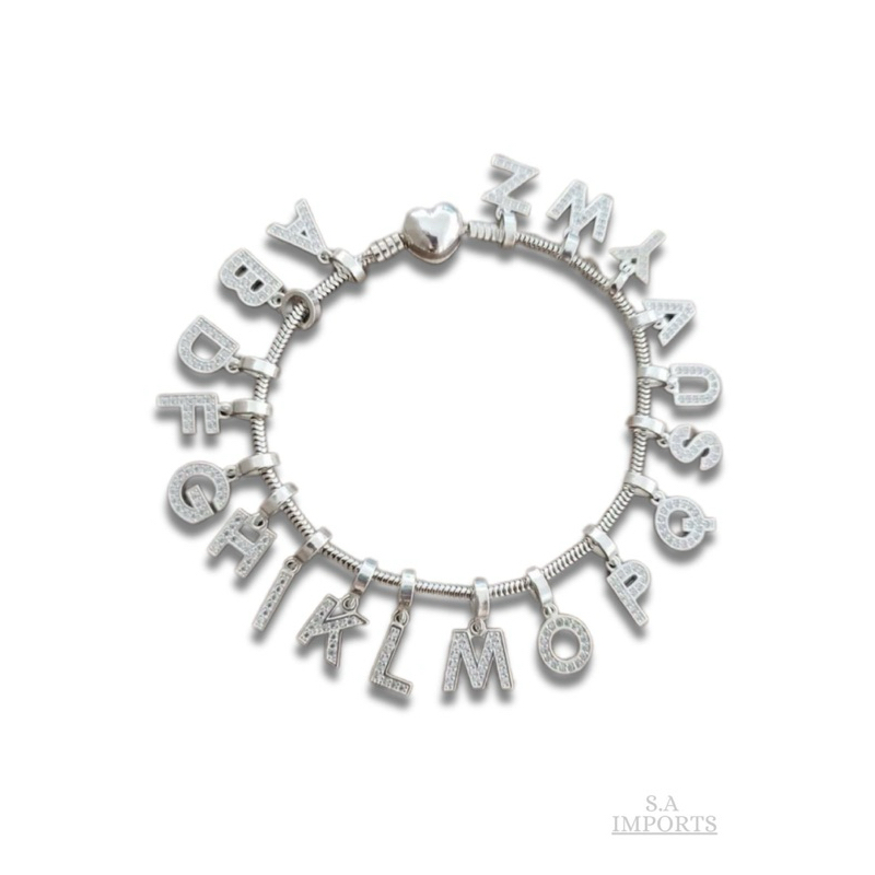 **Berloques Exclusivos para Pulseiras ** Personalize sua pulseira com nossos berloques exclusivos, feitos de materiais de alta qualidade e com detalhes encantadores. Disponíveis Todas as Letras do ALFABETO, cada berloque conta uma história única e traz um toque de originalidade ao seu acessório. Ideais para presentear ou para complementar sua coleção pessoal. Transforme sua pulseira em uma obra de arte que reflete sua personalidade! Enviamos para m 24 hs