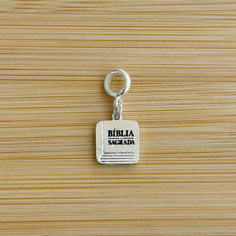 Berloque Bíblia - banhado a prata, com garantia
