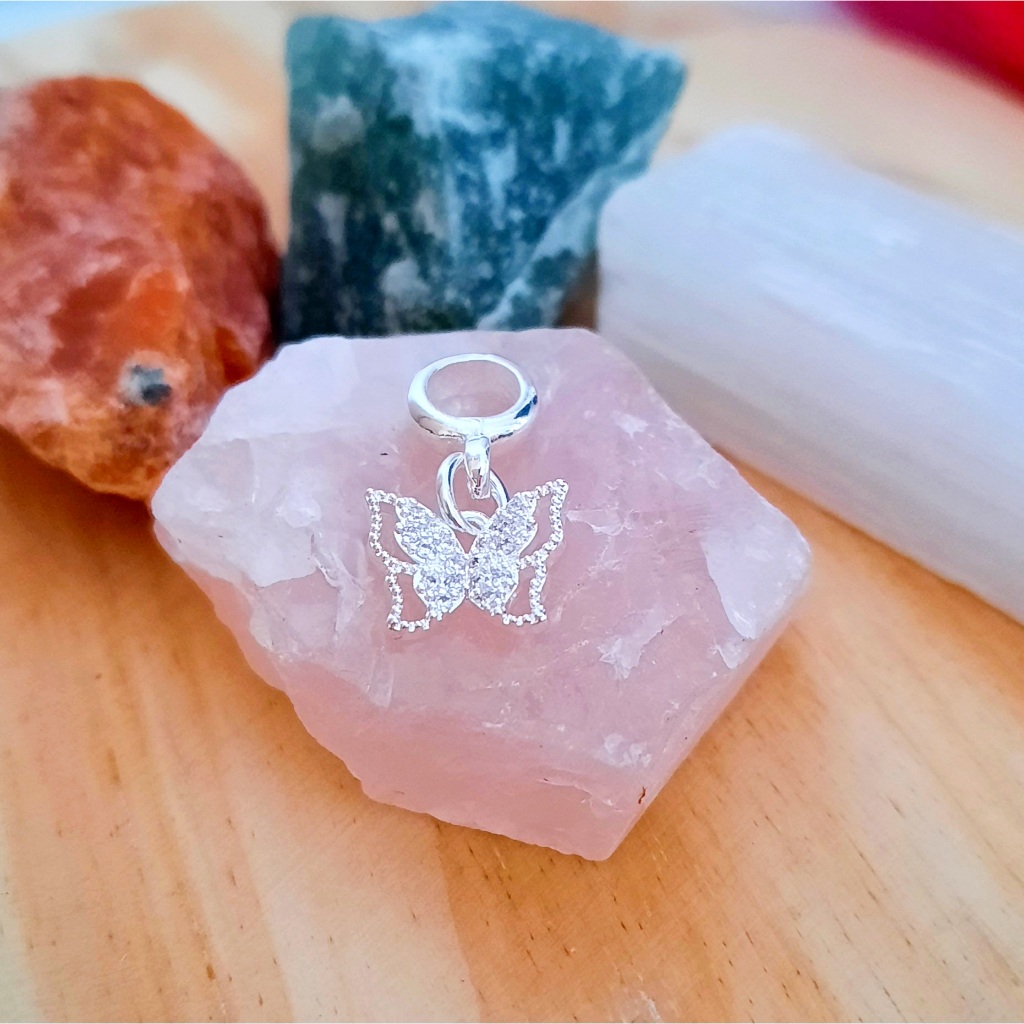 Berloque Borboleta Vazada Cravejada Zircônia Banhada à Prata