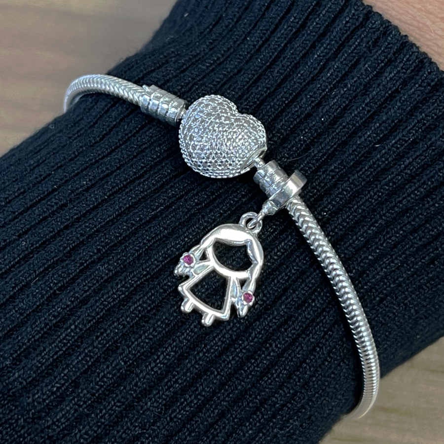 Berloque Charms Filha Menina Pedra Zirconia Cravejada Prata