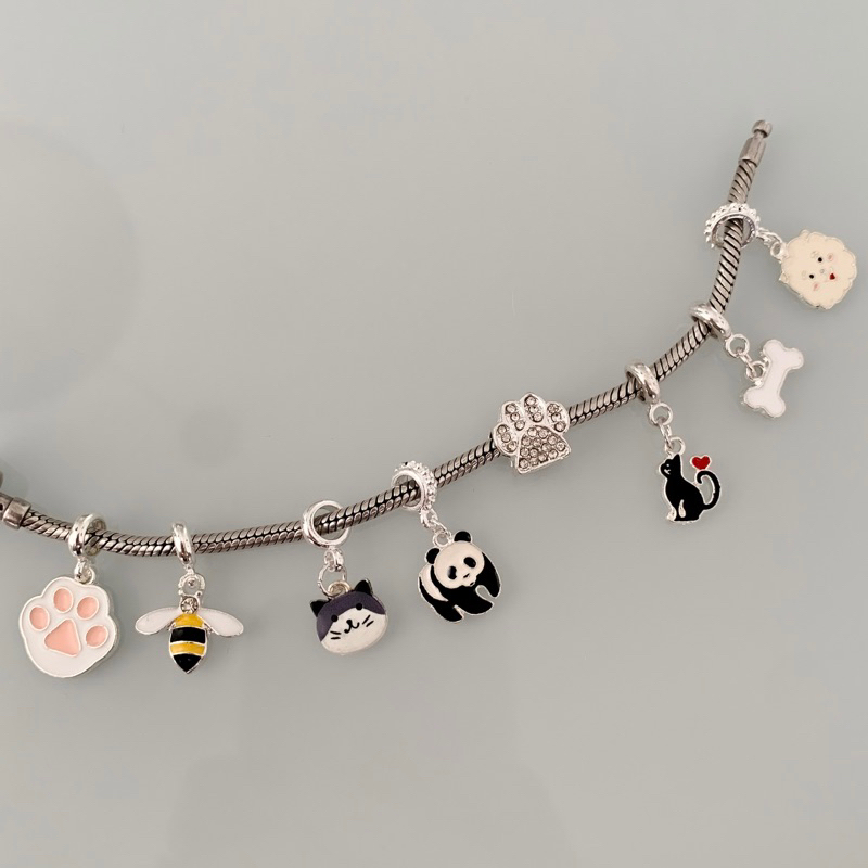 Berloque gatinho cachorro panda animais de estimação abelha banhado a prata