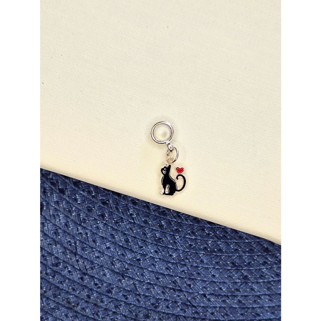 Berloque Gato Preto Love Banhado a Prata 925