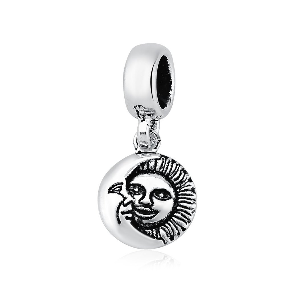 Berloque para Pulseira de Prata 925 Sol e Lua Envelhecido