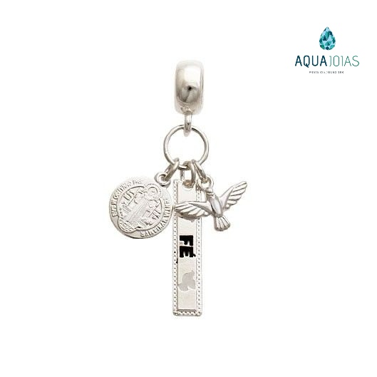 Berloque patua Espirito Santo São Bento placa fé prata 925