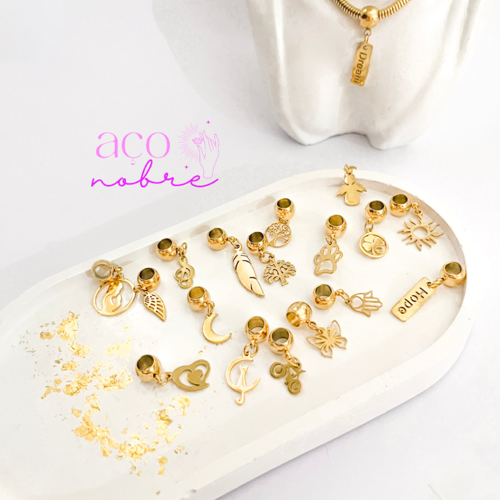 Berloques Aço Inox Douradas Pingentes Diversos Coração Animais Bike Arvoré Da Vida Trevo Da Sorte