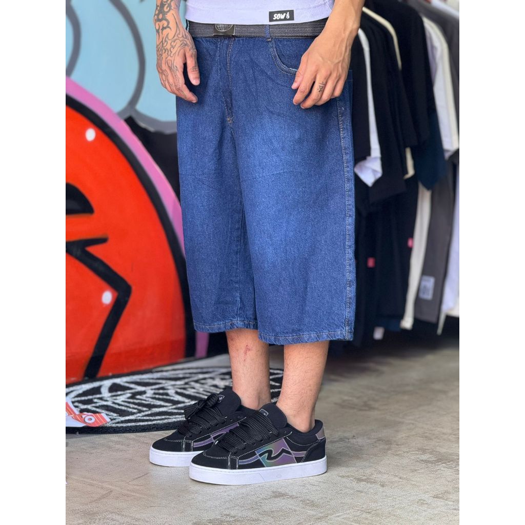 Bermuda Baggy Jorts Jeans Escura Balao Street Sow Culture skate lançamento promoção novidade