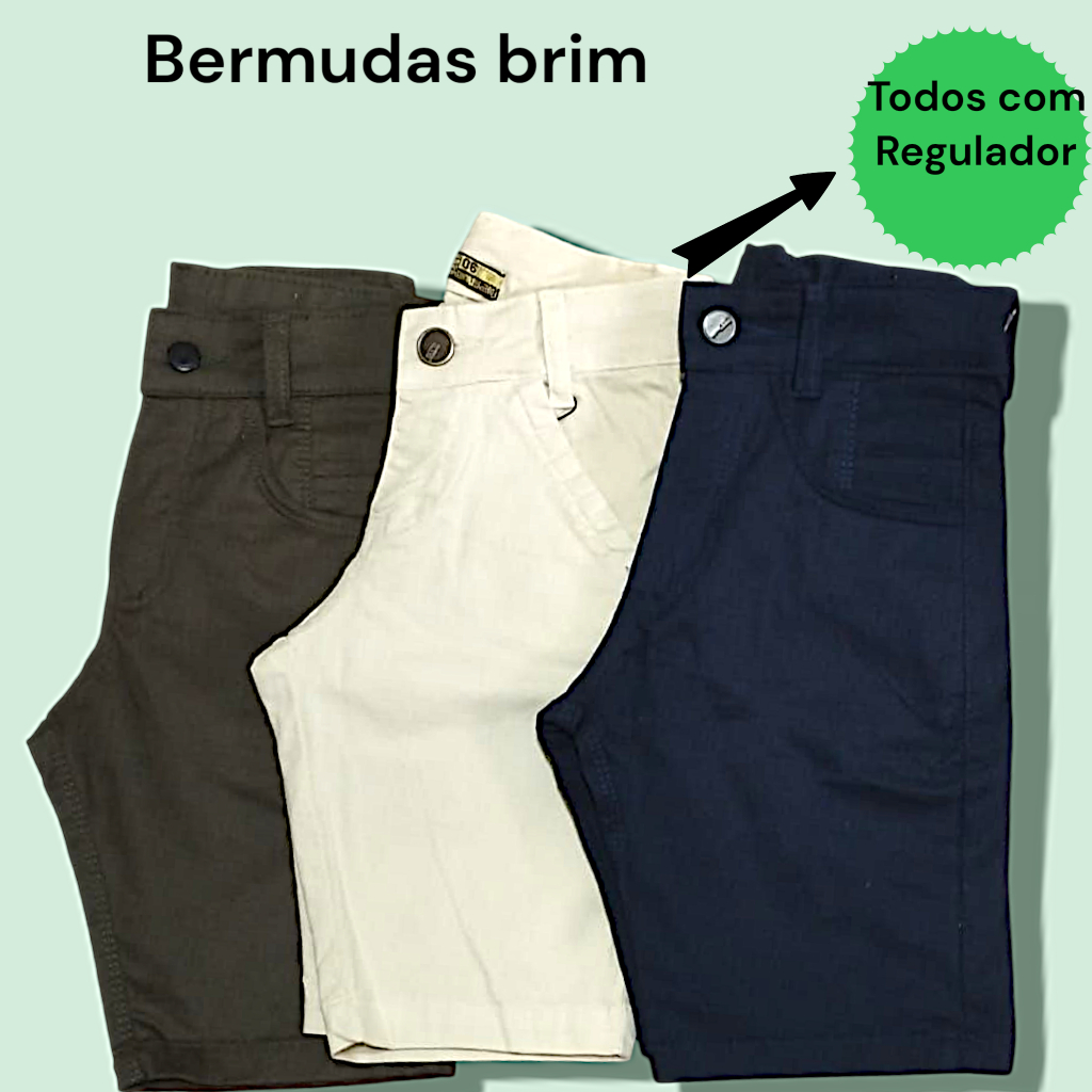 bermudas em brim com elastano e regulagem,pra sua criança e adolescentes,ficarem bem no estilo, muito confortável para seu garoto . Bermudas pra todas as ocasiões. 2% de elástico elastico pra regular o cós 1ao 16anos