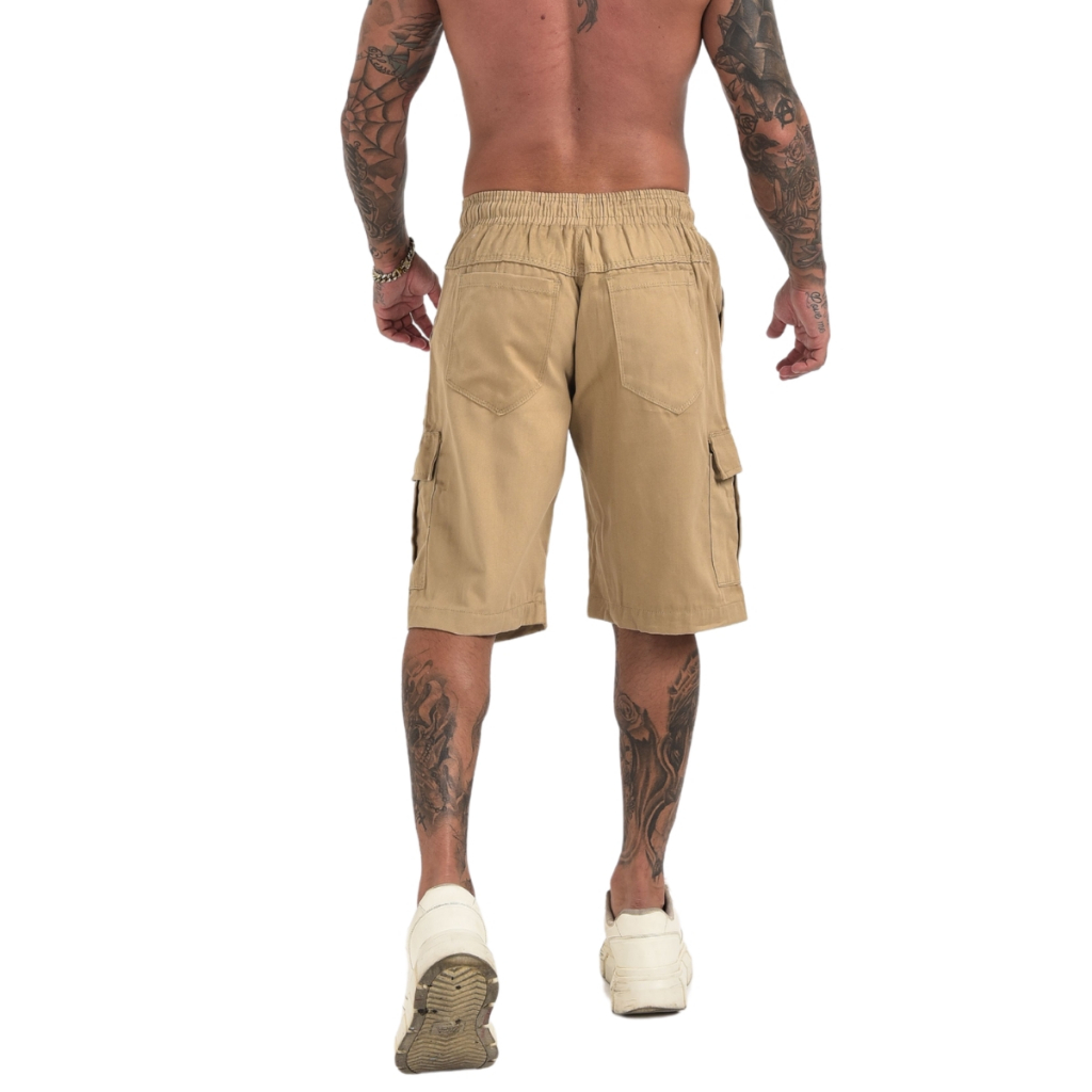 bermuda cargo elastico com cordão na cintura tecido sarja