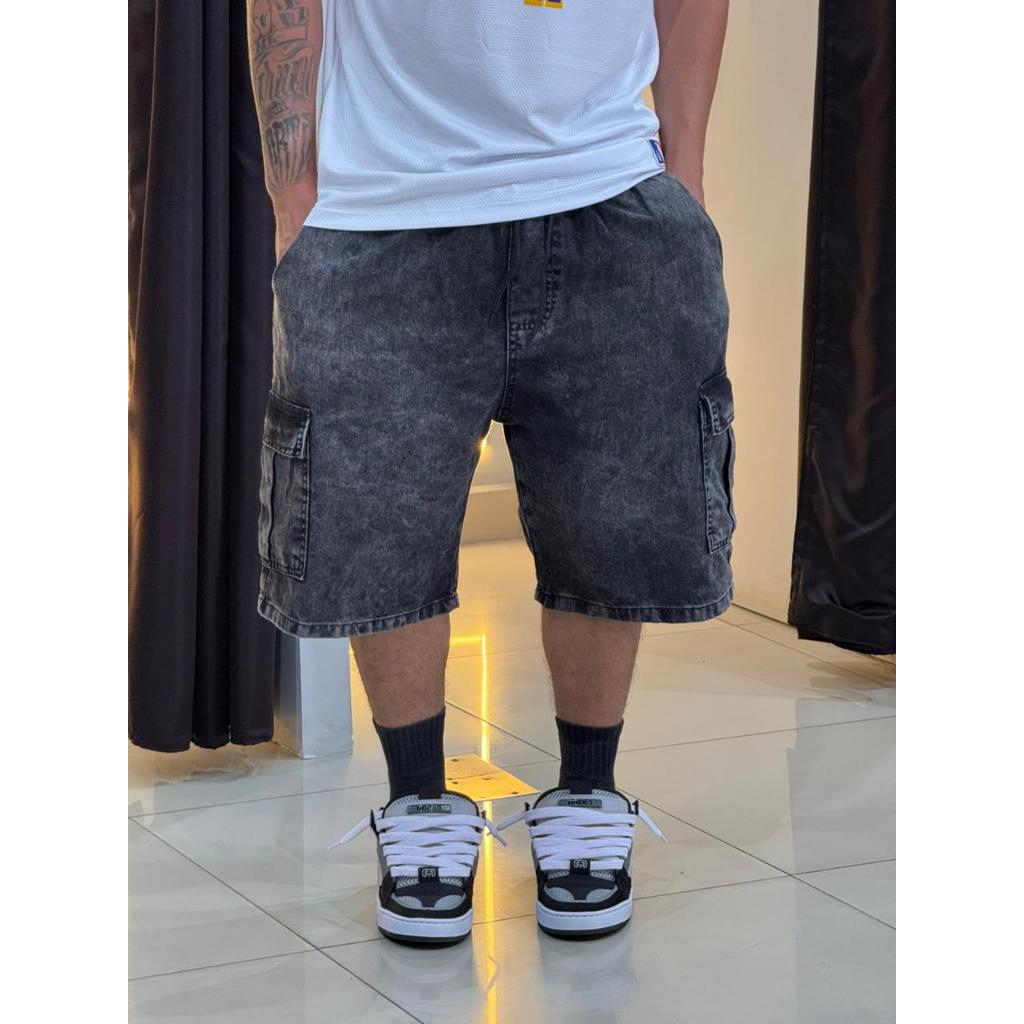 Bermuda/shorts Masculino Cargo Streetwear em Jeans Estilo urbano, atitude e funcionalidade em uma peça só. O shorts cargo streetwear é ideal para quem curte um visual moderno sem abrir mão do conforto. Design Urbano Com lavagem estonada em tom preto/grafite, traz um visual marcante e autêntico. O modelo cargo conta com bolsos laterais grandes na coxa, além dos bolsos frontais e traseiros, reforçando a estética street e a praticidade no dia a dia. Conforto no Uso Cós com elástico e ajuste por cordão garantem caimento perfeito e liberdade de movimento. Confeccionado em jeans leve e macio, ideal para encarar o calor e a rotina urbana com conforto. Versatilidade Street Combina facilmente com camisetas oversized, regatas, moletons e tênis, sendo perfeito para rolês, lazer, viagens ou composições streetwear. Detalhes do Produto • Material: Jeans • Cor: Preto Estonado / Grafite • Cintura: Elástica com cordão ajustável • Bolsos: 6 bolsos (2 frontais, 2 traseiros e 2 laterais cargo) • Caimento: Regular Fit / Confortável • Indicado para: Verão e uso casual urbano Tamanhos disponíveis: P ao GG