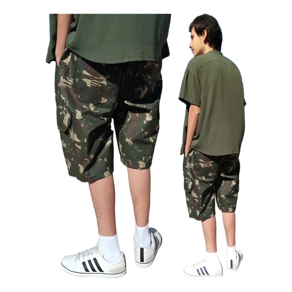 **Descrição:** Apresentamos a bermuda cargo em Ripstop, o mesmo tipo de material dos uniformes do Exército Brasileiro! Ideal para quem busca estilo, conforto e funcionalidade no dia a dia. Com 6 bolsos utilitários e design moderno, essa peça é perfeita para atividades ao ar livre ou momentos casuais. O cordão e elástico na cintura garantem um ajuste personalizado e confortável. Disponível nos tamanhos M, G, GG, G1 e G2, atende diferentes biotipos com praticidade e estilo. **Destaques do Produto:** **Material de Qualidade:** - Confeccionada em Ripstop, oferecendo maciez, resistência e ótima respirabilidade. **Design Funcional e Moderno:** - Modelo cargo com bolsos utilitários, ideal para quem valoriza praticidade e um visual despojado. **Ajuste Confortável:** - Cordão e elástico na cintura, proporcionando ajuste fácil e confortável para qualquer ocasião. **Ampla Gama de Tamanhos:** - Disponível nos tamanhos: - **M:** Peso médio 60-70 kg - **G:** Peso médio 70-80 kg - **GG:** Peso médio 80-90 kg - **G1:** Peso médio 90-100 kg - **G2:** Peso médio 100-110 kg **Versatilidade:** - Ideal para diferentes situações, desde atividades ao ar livre até momentos casuais e descontraídos. Garanta já a bermuda cargo em Ripstop! Com design funcional e ajuste confortável, essa peça é perfeita para quem quer unir estilo e praticidade no dia a dia. Não perca a chance de adquirir uma bermuda cargo confortável e moderna. Compre agora na nossa loja online e escolha o tamanho ideal para você!