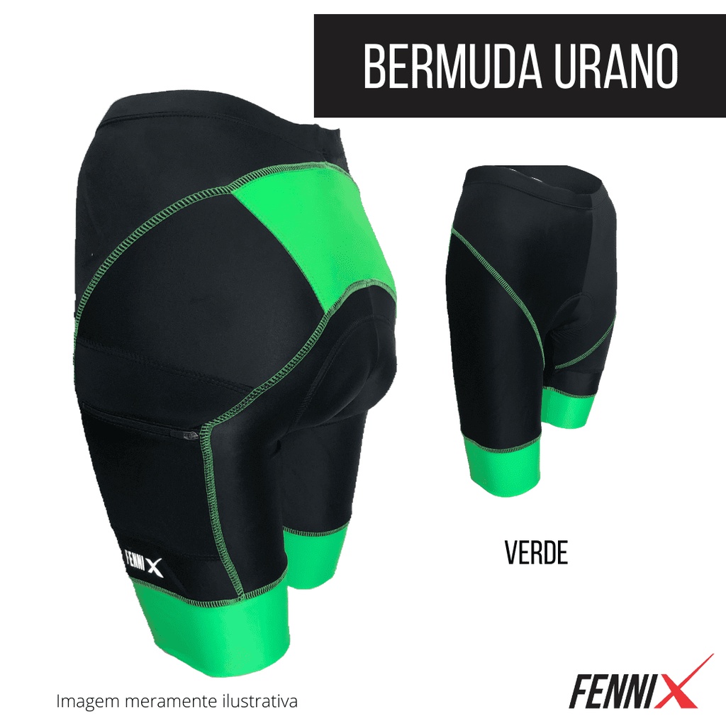 Bermuda Ciclismo Masculina URANO Tecido lycra power confeccionada com 85% Poliamida e 15% Elastano, o que garante flexibilidade e elasticidade para prática de ciclismo. Forro de espuma com densidade 100/80/60 garantindo maior conforto durante as pedaladas. Proteção UVB e UVA +50 Possui tratamento antimicrobiano: tecnologia que inibe a propagação de fungos e microrganismos, provenientes do suor excessivo, evitando o mau cheiro. Bolso com zíper Costura reforçada Tamanho do PP ao XG.