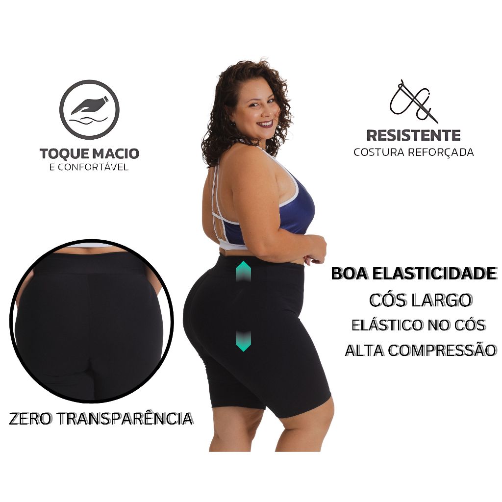 Bermuda Ciclista Básica Fitness Cintura Alta Sem Transparência Plus Size P ao G5 Curve
