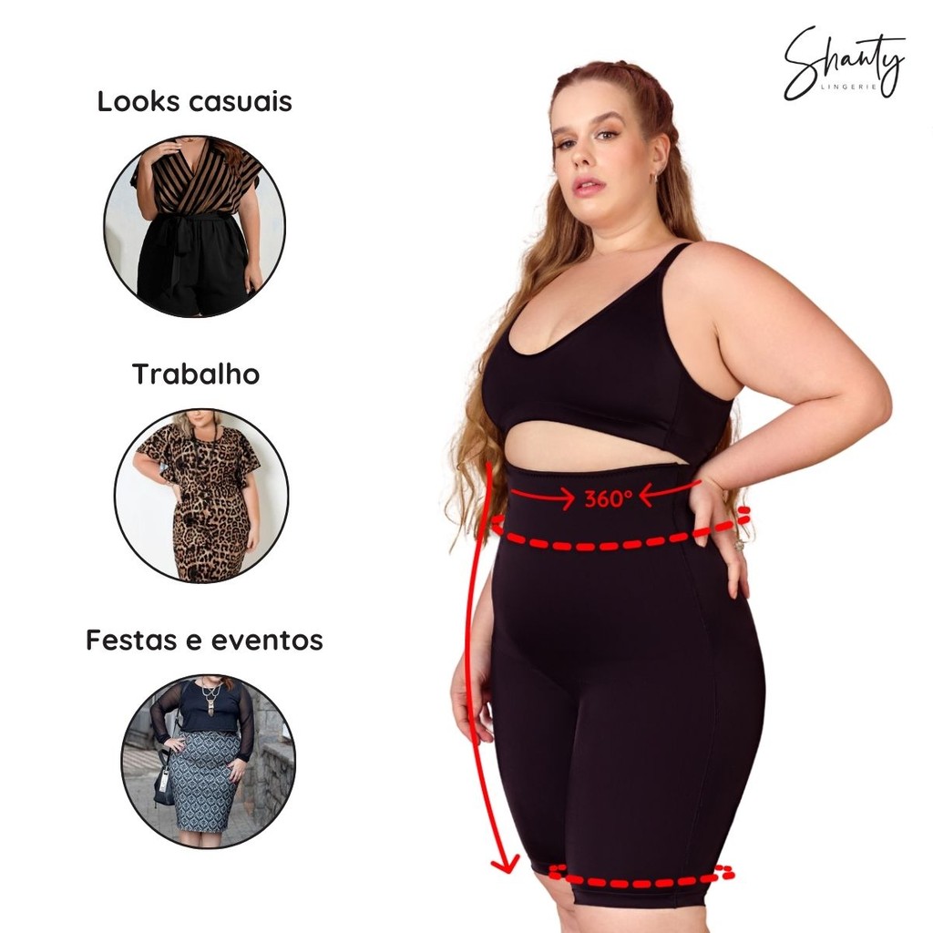 Bermuda Cinta Modeladora Plus Size Bercinta Sem Costura Afina Cintura Emagrecedora 2 em 1 Empina Bumbum
