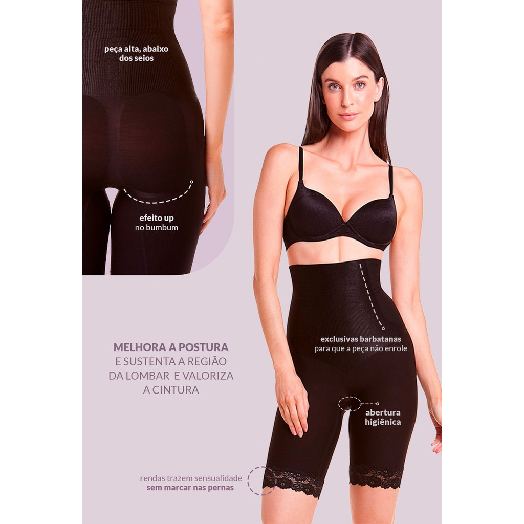 Bermuda Cinta Modeladora Reduz Medidas De Abdômen E Culote Com Barbatana Renda Promoção Plié Shades