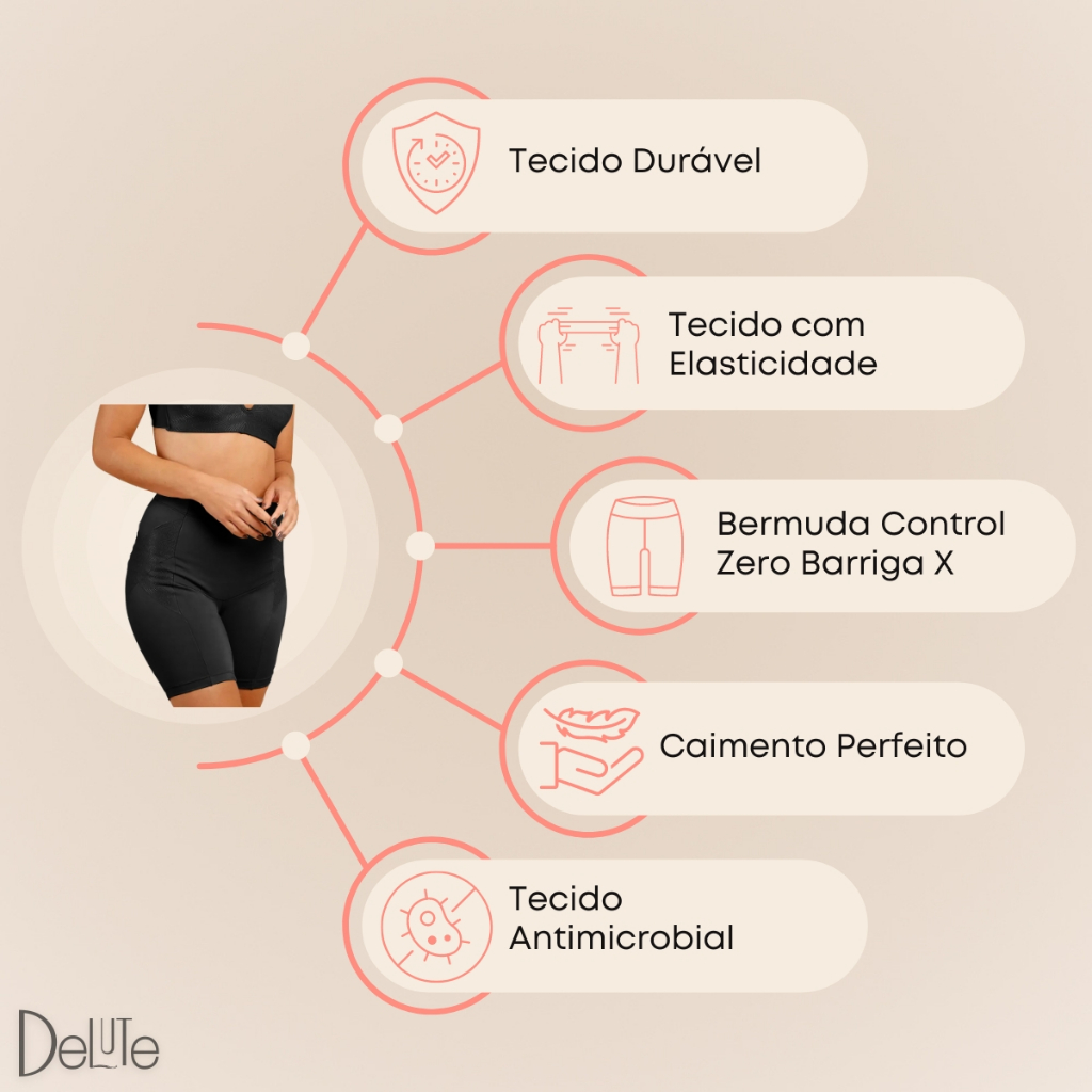 Bermuda Culote Dilady Control Zero Barriga Cintura Alta com Sobreposição em X Extra Sustentação