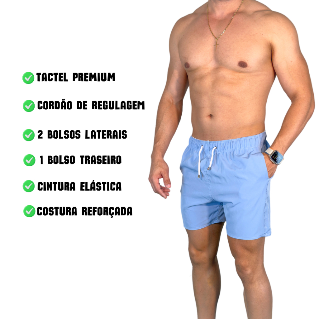 ✨Os Swim Shorts são de excelente qualidade, podendo ser usado em qualquer lugar sem perder o estilo e conforto. São Fabricados com tecido microfibra importado 90% poliéster e 10% ELASTANO, possuem uma secagem extremamente rápida. Shorts ELASTANO 1️⃣ - Flexibilidade e Conforto: O elastano, também conhecido como spandex ou lycra, proporciona elasticidade aos shorts, permitindo maior liberdade de movimento e conforto durante o uso. 2️⃣ - Ajuste ao Corpo: Por ser elástico, o elastano ajuda os shorts a se ajustarem bem ao corpo sem restringir os movimentos, o que é ideal para atividades físicas e esportivas. 3️⃣ - Durabilidade: Tecidos que contêm elastano tendem a ser mais duráveis porque o elastano ajuda a manter a forma original do tecido mesmo após várias lavagens e usos. 4️⃣ - Secagem Rápida: Em geral, tecidos com elastano tendem a secar mais rapidamente do que outros tipos de tecido, o que os torna ideais para atividades que envolvem suor. 5️⃣ - Resistência ao Enrugamento: O elastano ajuda os tecidos a manterem sua forma e estrutura, reduzindo a tendência ao enrugamento. Essas qualidades tornam os shorts de elastano uma escolha popular não apenas para atividades esportivas, mas também para o uso diário, proporcionando conforto e praticidade. 📏 Medidas / Tamanhos P, M, G e GG. Tamanho P - VESTE TAMANHO 36 Tamanho M - VESTE TAMANHO 38/40 Tamanho G - VESTE TAMANHO 42 Tamanho GG - VESTE TAMANHO 44/46 ✅ Redinha no bolso para não acumular água ou areia ✅ Dois bolsos laterais e um traseiro ✅ Cintura elástica ✅ Cordão para regulagem ✔️Compra segura com garantia shopee ✔️Somos vendedores indicados pela shopee ✔️ Fotos 100% autênticas do produto 🚛 Enviamos dentro de 10H úteis. 👤 ATENDIMENTO AO CLIENTE: Dúvidas? Estamos disponíveis no chat!
