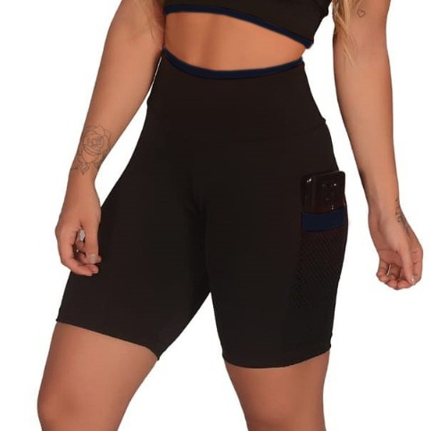 Bermuda feminina academia fitness com bolso lateral