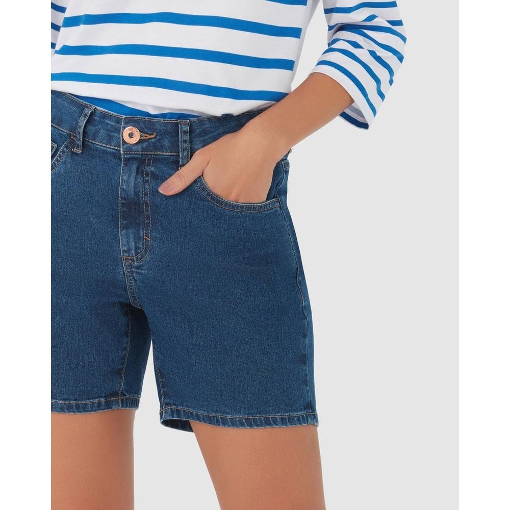 Bermuda feminina confeccionada em jeans com elastano para total conforto. A bermuda Comfort é uma peça perfeita para o dia a dia. Ela possui cintura média, passantes no cós, bolsos frontais e traseiros funcionais com detalhe de etiqueta decorativa da marca. Um item ideal para combinações modernas e despojadas! Bermuda Comfort em Jeans com Elastano Cintura Média Cós Com Passantes Bolsos Frontais e Posteriores Funcionais Situação de Uso: Casual e Dia a Dia