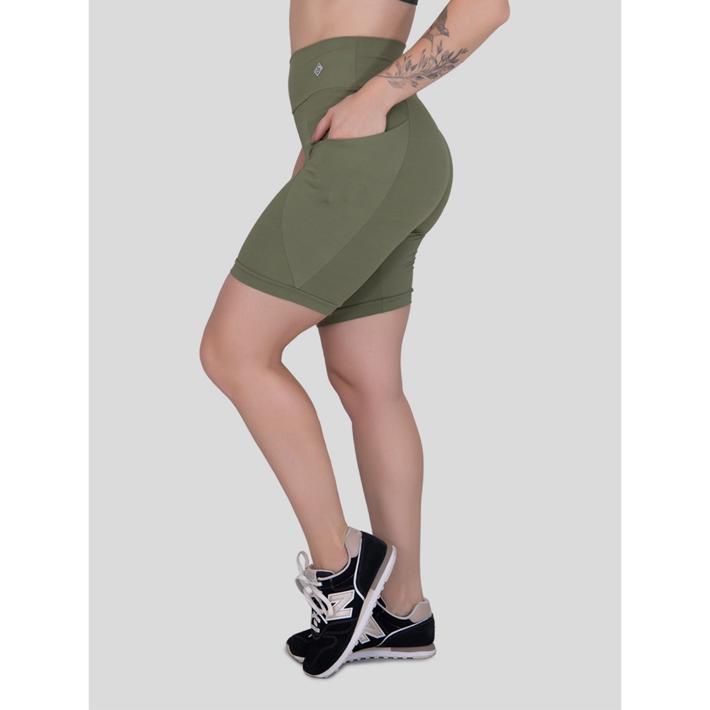 Bermuda Feminina de Poliamida com Bolso Yoga Moda Feminina Academia