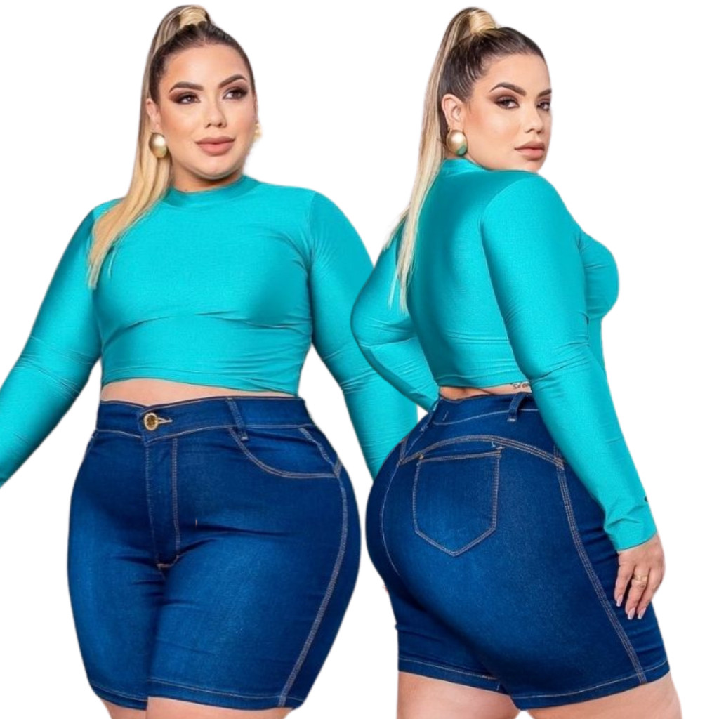Moda Feminina Tamanhos Grandes com Jeans Stretch mais Conforto e Estilo A Bermuda Jeans Feminina Plus Size Cintura Alta com Elastano, è uma peça essencial que une conforto, estilo e versatilidade. Desenvolvida especialmente para valorizar as curvas femininas, esta bermuda é ideal para mulheres que buscam uma modelagem que se ajuste perfeitamente ao corpo, proporcionando liberdade de movimento e elegância. Características Principais: Modelagem Plus Size com Cintura Alta: Design que realça a silhueta, oferecendo sustentação e conforto. Bermuda Jeans Feminina: Confeccionada em jeans resistente com elastano, garantindo flexibilidade e durabilidade. Bermuda Plus Size: Possui bolsos frontais falsos e traseiros funcionais, combinando praticidade e estilo. Com Cintura Alta, Elastano e Acabamento Premium: Detalhes cuidadosamente elaborados para um visual moderno e sofisticado. Versatilidade: Perfeita para compor looks casuais ou mais elaborados, adaptando-se a diversas ocasiões.