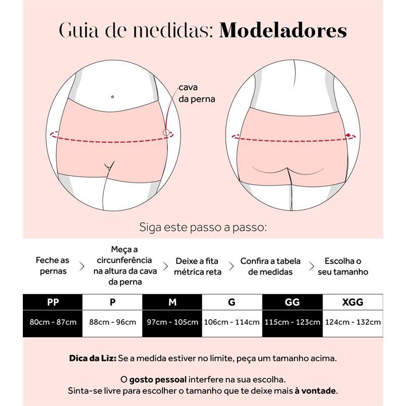 Bermuda modeladora da linha Shapewear Invisible Control Reduz extra forte o abdome Zero marcas nas pernas Costura anatômica para modelar o bumbum e ajustar o culote Desaparece totalmente sob a roupa Em cima: Tecido duplo em microfibra Tecno 3D sem costura para reduzir localizadamente Embaixo: Tecido em super microfibra exclusiva Estética, indesmalhável, super fina, leve para não marcar Use com: saias e calças justas Características: Bermuda invisible control. Redução localizada e efeito zero marcas. Reduz extra forte abdome. Ajusta culotes. Modela glúteos. Zero marcas total (poucas exceções). Tecido respirável. Diferencias: Use com: Saias. Caças. Composição: Corpo: 82% Poliamida e 18% Elastano. Forro: 100% Algodão. Pernas: 73% Poliamida e 27% Elastano.