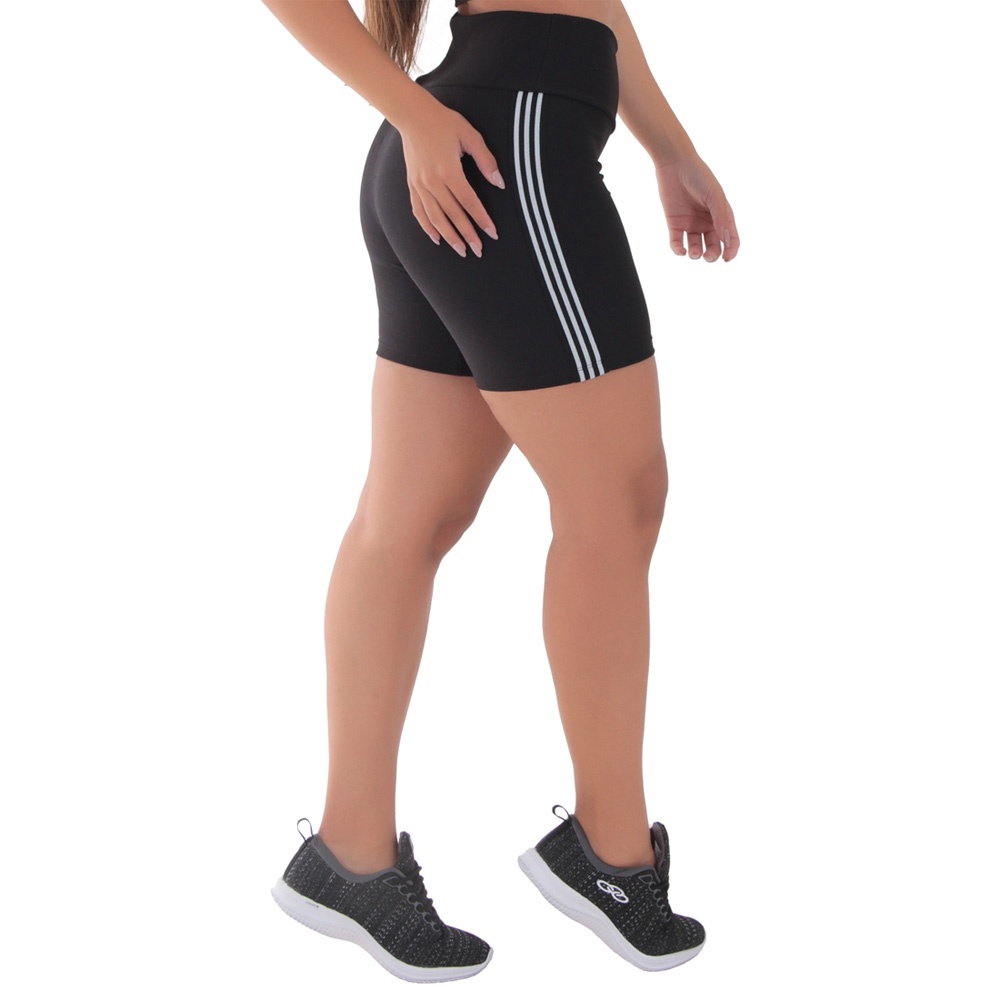 BERMUDA FITNESS ACADEMIA SUPLEX, COM LISTRAS NA LATERAL. COMPÓSIÇÃO: 88% POLIÉSTER 12% ELASTANO