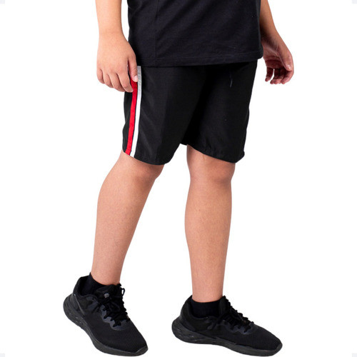 Bermuda Infantil Masculina Short Tactel Faixa Cinza Lateral Verao para Esportes e Escola 214