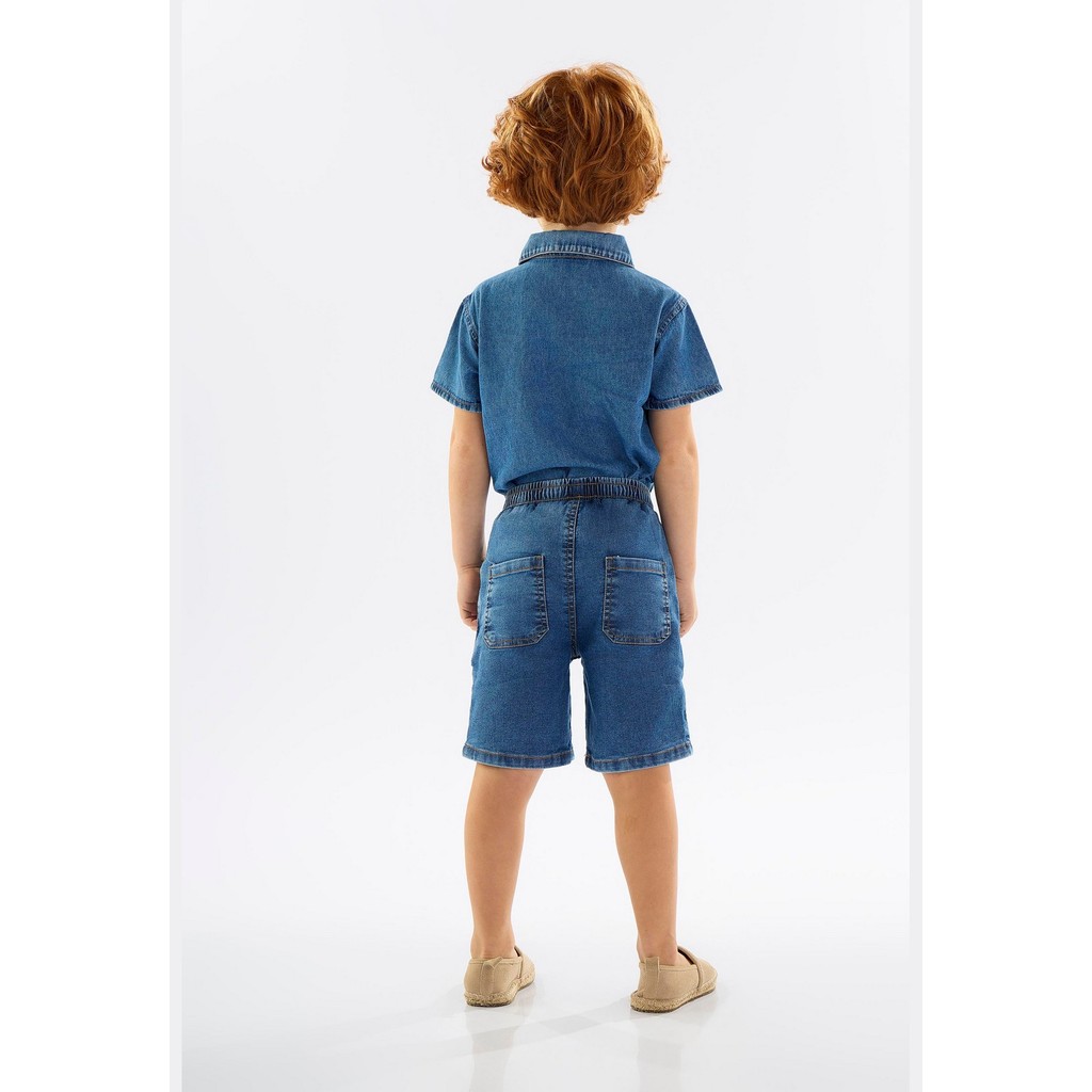 Bermuda infantil masculina confeccionada em jeans com elastano, proporcionando conforto e muito estilo para seu pequeno. Sua cor azul traz um visual moderno e versátil, ideal para compor looks casuais. Conta com cós elástico, bolsos frontais funcionais (falso nos tamanho P a G) e bolsos na parte das costas. Peça perfeita para o dia a dia, oferecendo estilo e liberdade de movimento para o seu filho. Possui efeito lavanderia, que é um processo de lavagem que cria uma variedade de efeitos visuais e texturas.Tecido: Bermuda: Jeans com ElastanoComposição: 91% algodão 7% poliéster 2% elastanoModelagem: AmplaComprimento: CurtoForro: NãoCintura: Média