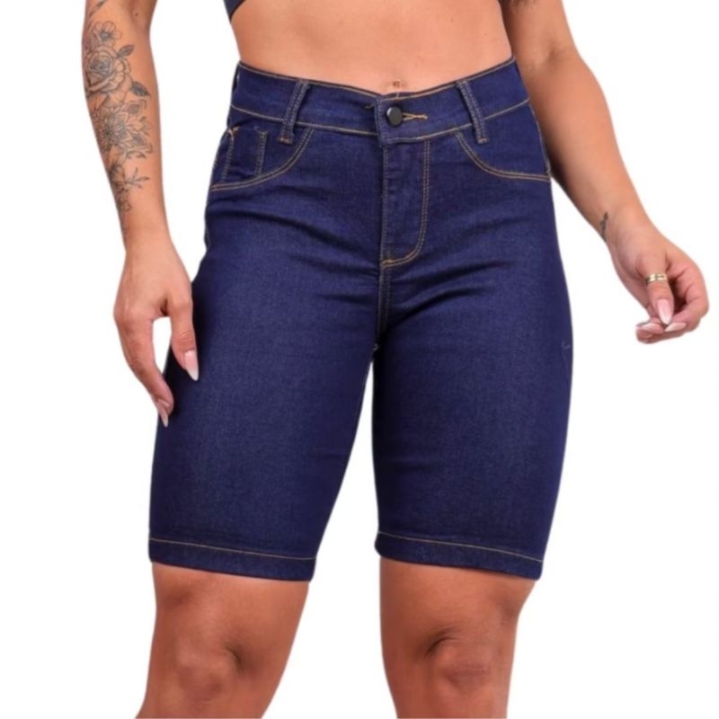 Bermuda Jeans Ciclista Cintura Alta Levanta Bumbum