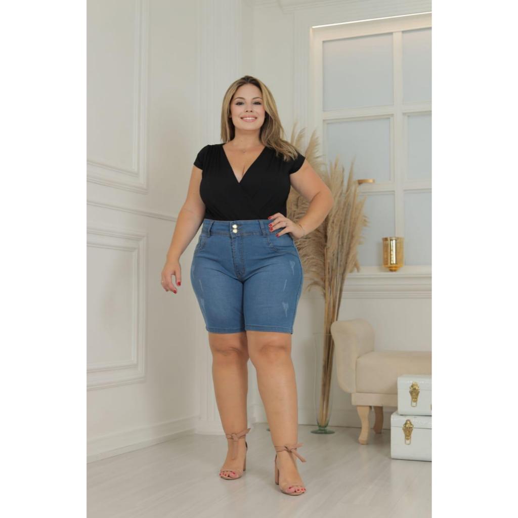 Bermuda Jeans feminina plus size Premium Lycra Stone rosa mel envio imediato