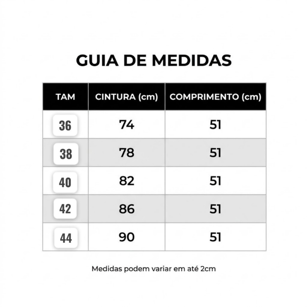 Tabela rápida para você comparar este item com outros similares de Bermudas dentro do nosso catálogo.