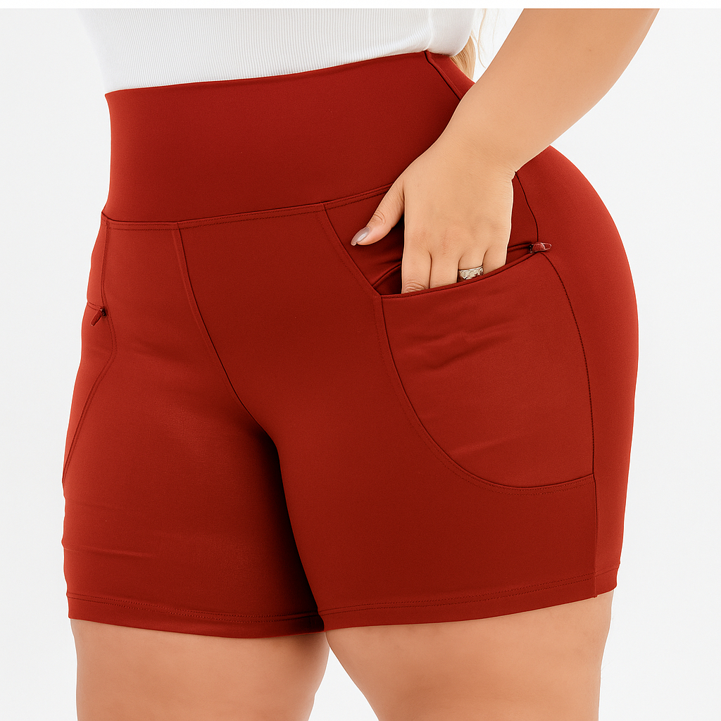 Bermuda Legging Feminina Plus Size Com Bolso Zíper Cintura Alta GG ao G4