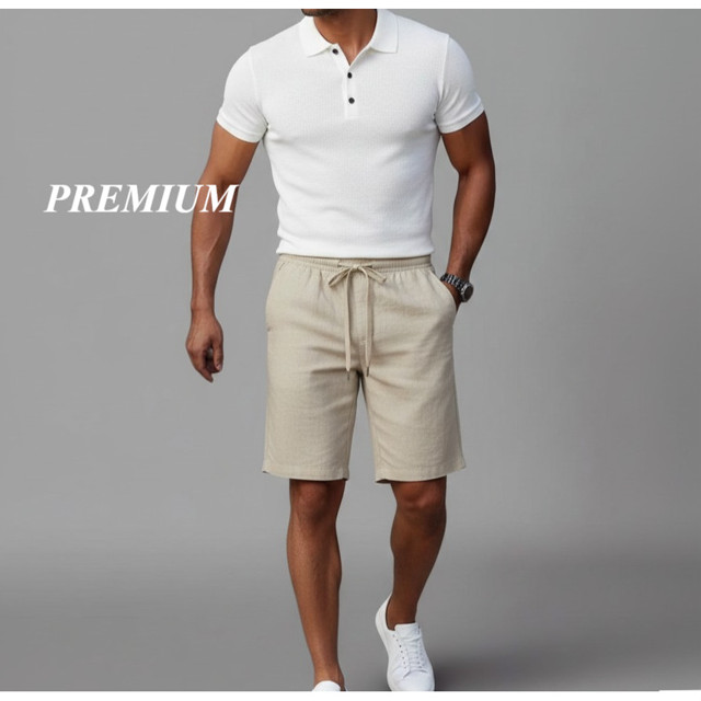 Bermuda Linho Misto Premium Masculina | Short De Luxo Verão Casual Cores Modernas
