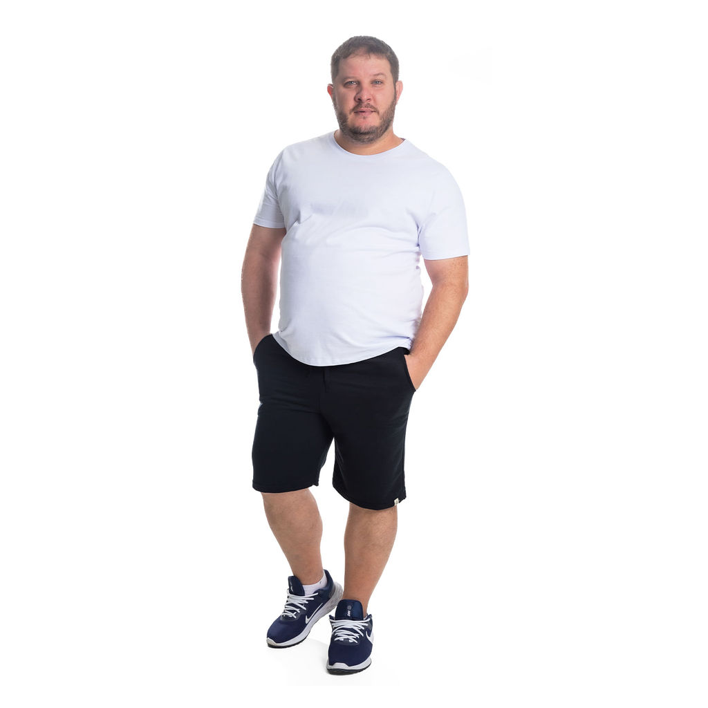 Bermuda Masculina Plus Size Confeccionada em moletom, que é macio e elástico, oferecendo uma sensação de conforto ao vestir. A bermuda tem um elástico na cintura para ajuste e bolsos laterais para armazenar pequenos objetos. É uma ótima opção para atividades casuais, como caminhar, praticar esportes ou relaxar em casa.