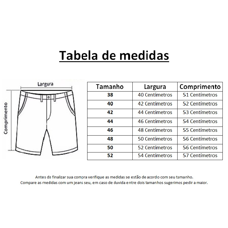 Bermuda de tecido leve o famoso tactel com elastano, nao esquenta otimo para verão, praia, festa! Estilo social com 4 bolsos e fechamento de ziper com botões. Atenção nos tamanhos antes de concluir sua compra! *Tamanho 38, Circunferência da Cintura 80 cm, comprimento 51 cm. *Tamanho 40, Circunferência da Cintura 84 cm, Comprimento 52 cm. *Tamanho 42, Circunferência da Cintura 88 cm, Comprimento 53 cm. *Tamanho 44, Circunferência da Cintura 92 cm, Comprimento 54 cm. *Tamanho 46, Circunferência da Cintura 96 cm, Comprimento 55cm. *Tamanho 48, Circunferência da Cintura 100 cm, Comprimento 56 cm. *Tamanho 50, Circunferência da Cintura 104 cm, Comprimento 56 cm. *Tamanho 52, Circunferência da Cintura 108 cm, Comprimento 57 cm. Seja leve com sowfish!