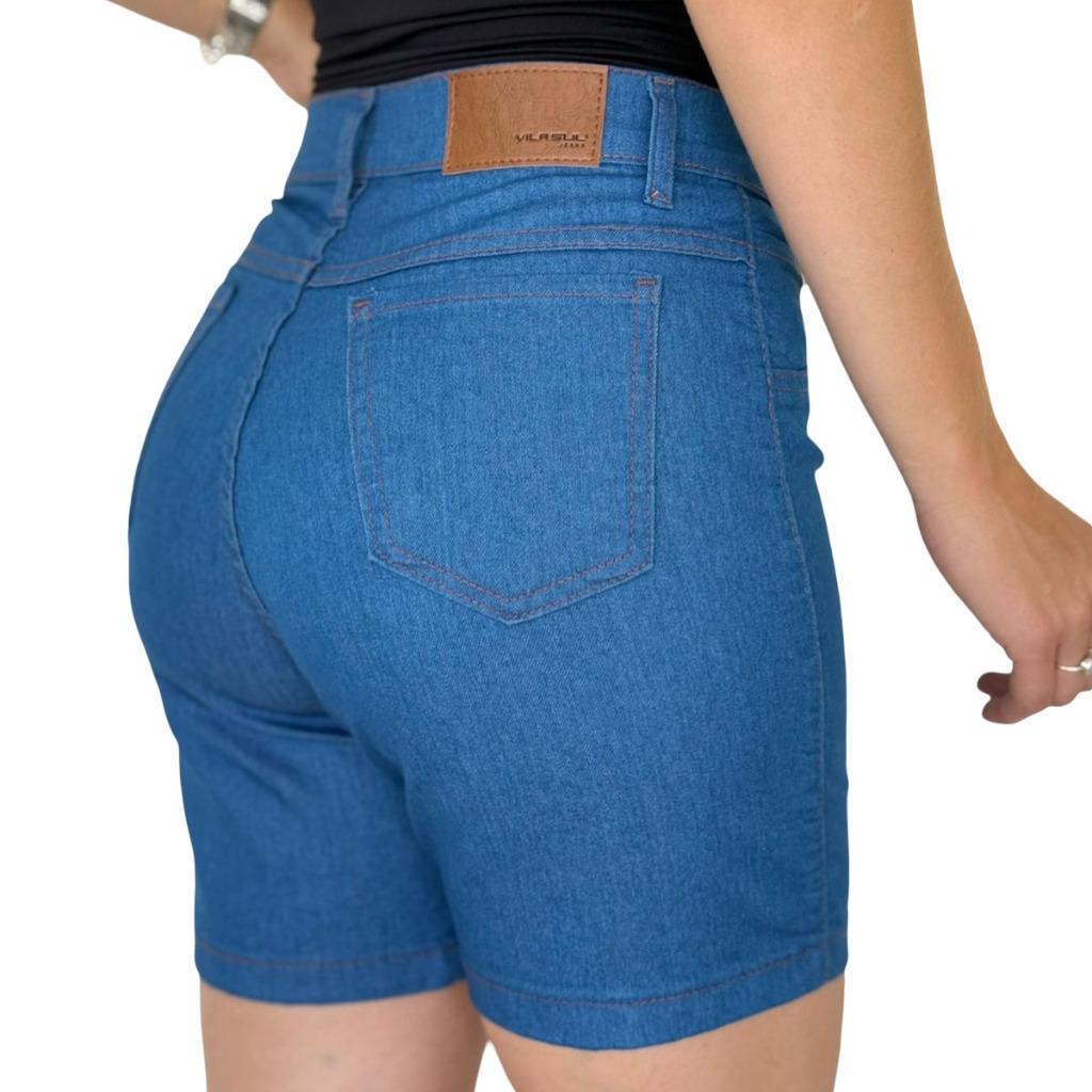 Bermuda Meia Coxa Jeans Feminina Elastano Lycra Cintura Alta Short Levanta BumBum