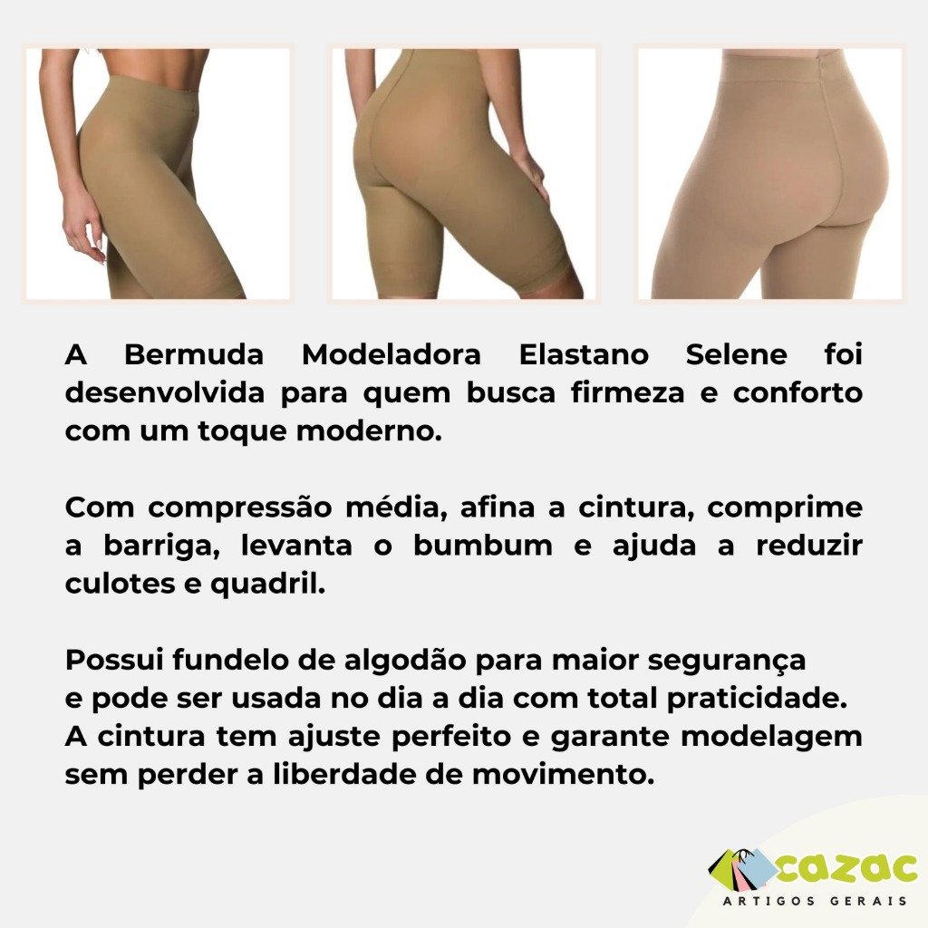 Bermuda Modeladora Selene Elastano – Conforto, Sustentação e Modelagem Perfeita A Bermuda Modeladora Selene foi desenvolvida para quem busca modelar o corpo com conforto e discrição no dia a dia. Produzida com tecido de alta elasticidade, ela proporciona ajuste perfeito ao corpo, ajudando a definir a silhueta, suavizar medidas e valorizar as curvas naturais. Seu design moderno oferece compressão suave, garantindo sustentação sem abrir mão do conforto. Ideal para usar sob vestidos, saias, calças ou no dia a dia, proporcionando mais segurança e bem-estar durante o uso. Principais Benefícios ✔ Modela e valoriza a silhueta ✔ Compressão confortável que se adapta ao corpo ✔ Tecido macio e flexível ✔ Ajuste perfeito sem marcar a roupa ✔ Ideal para uso diário Informações do Produto Cor: • Pó de Arroz Composição: • 83% Poliamida • 17% Elastano Tamanhos disponíveis: • P • M • G Indicação de Uso Perfeita para usar com vestidos, saias, roupas ajustadas ou no dia a dia, ajudando a manter o corpo mais firme e a silhueta mais definida. ✅ Produto original Selene ✅ Alta qualidade e conforto ✅ Modelagem que valoriza o corpo
