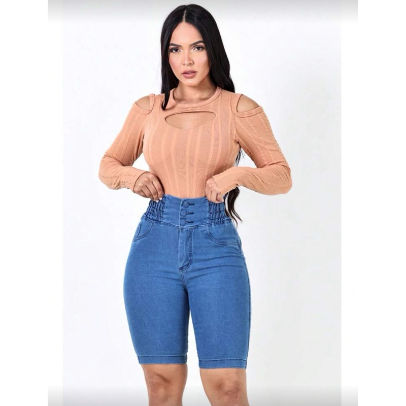 bermuda pedal afina cintura delave tendência