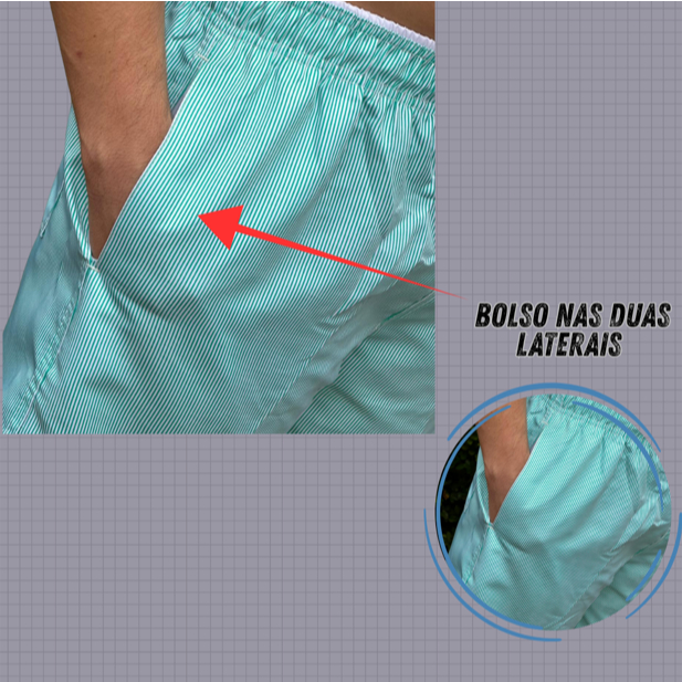 | Bermudas De Banho Estampa Risca De Giz Masculina Shorts Com Costur... este produto | R$ 25,49 | 49% | 4.7/5 | 11 |