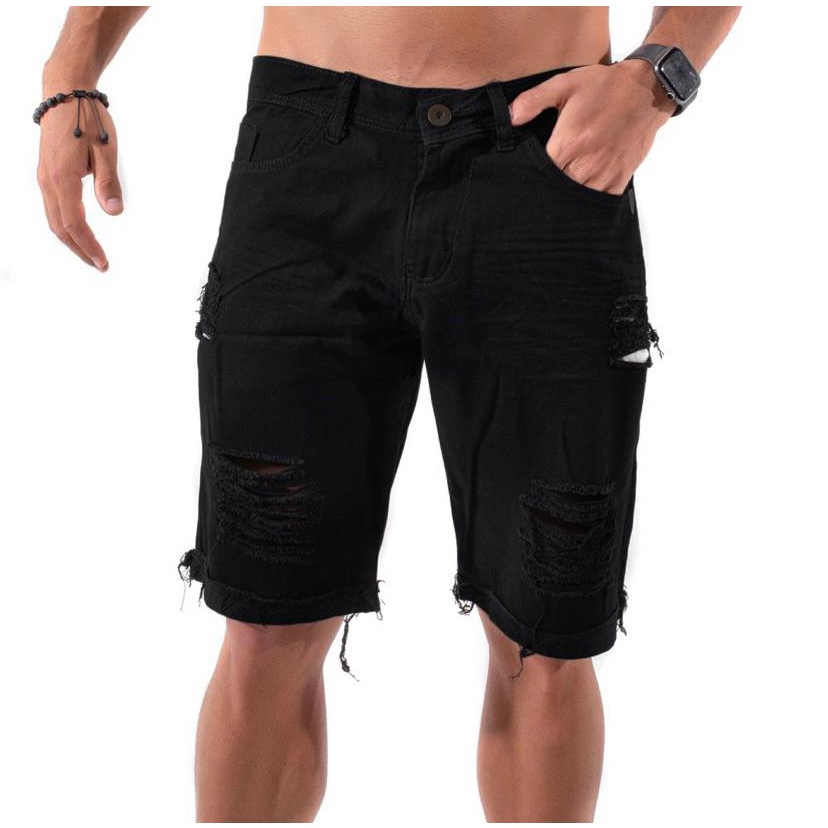 Bermudas Jeans Rasgada Desfiada Preta e Branco Lançamento Verão + Relógio Esportivo A Prova D'Água