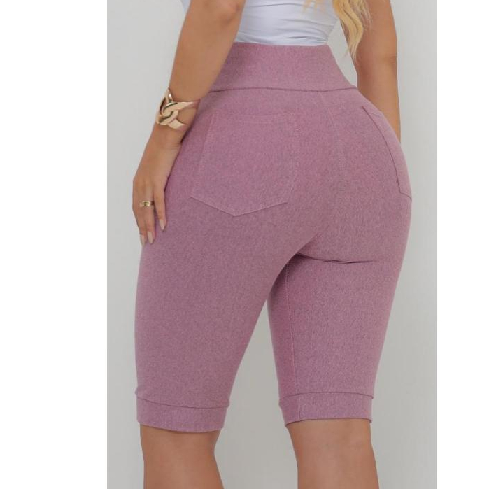Bermudas Malha Jeans cotton cintura alta com barinha virada na perna comprimento ate o joelho