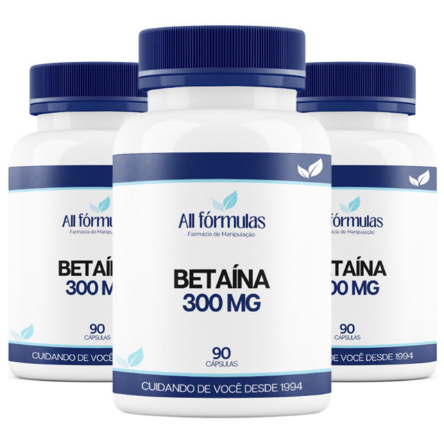 Betaína HCL 300MG - 90 Cápsulas - Kit 3 Frascos
