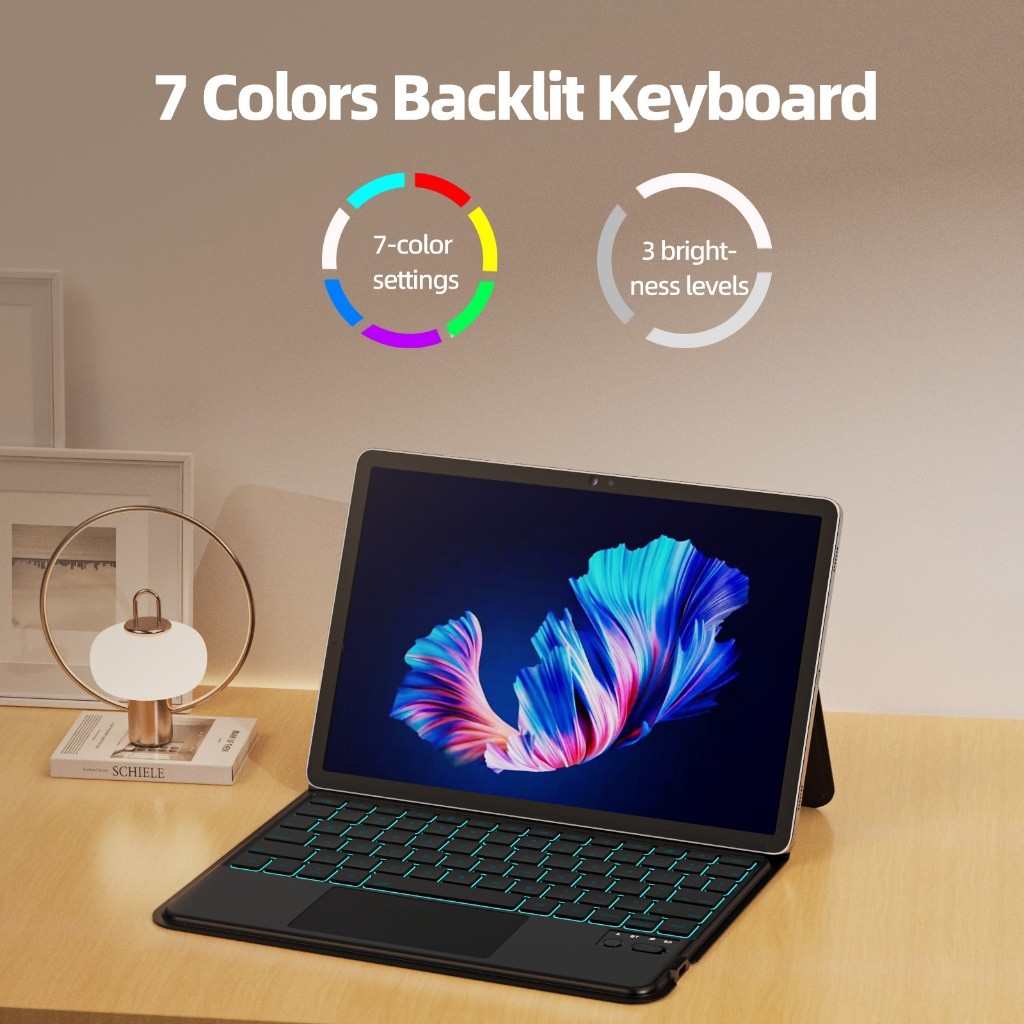 1. Magnetic Protective Case with Keyboard: Our BETTDOW multifunctional case for Samsung Galaxy Tab S7/S8/S9/S9 FE is not only a magnetic protective case to provide all-round protection when closed but also a keyboard when turned on and connected. With the strong magnetic attachment, you can attach your Tab without worrying about falling off. 2. Bluetooth 5.0 & LED Screen Display: With built-in Bluetooth 5.0, the keyboard can connect quickly and wirelessly with the tablet. Separate switches and Bluetooth buttons are on the LED screen with Lapslock indicators, Bluetooth connection status, low battery warning, and charging status. 3. Multi-gesture touchpad: The wireless keyboard supports official gesture navigation, including one-finger operation, two-finger operation, and three-finger operation, helping you scroll up/down pages, return to homepage, switch between Apps, and more, improving your work efficiency just like on a laptop. 4. Trackpad with 7 Adjustable Backlight Colors: Eight backlight modes can be selected, including 7 constant light modes with different colors and a dim light mode, and has three brightness levels to protect your eyes, helping you see the keys in the dark without glare and adding a lively atmosphere. 5. Quiet & Comfortable Keystrokes: Adopting scissor-foot structure and sound-absorption technology, the elastic keys with comfortable touch can bounce quickly with every keystroke, allowing you to immerse yourself in your work and not worry about disturbing others. 6. Waterproof Smooth Semi-Silicone: Covered by thickened silicone + leather material, the keyboard touch protective cover feels smooth and comfortable. Especially featuring waterproof and scratch-resistant features, the surface leaves no fingerprints, dust or stains, and removes dirt easily with a wet towel.