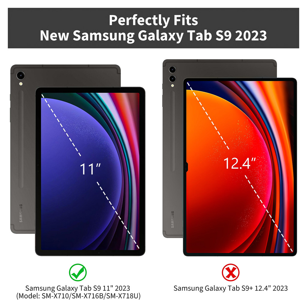 Nota: Este produto inclui BETTDOW Samsung Tab S9/S9 FE 11" Case e Bluetooth Wireless Keyboard (Tablet não incluso)!!! [Atenção Compatibilidade] O case de teclado BETTDOW é SOMENTE para Samsung Galaxy Tab S9 2023 11 polegadas (Número do modelo: SM-X710, SM-X716B, SM-X718U). Verifique gentilmente o número do modelo do seu tablet antes de comprar. [Teclado destacável magneticamente] Este case de teclado sem fio para Galaxy Tab S9 pode ser conectado ao case magneticamente. Você pode conectar este teclado Bluetooth a qualquer outro dispositivo com Bluetooth, como seu iPhone, iPad, laptop ou outro tablet. Compatibilidade com o sistema IOS e Android. [Capa de teclado com vários ângulos de visão] 3 ângulos de suporte antiderrapantes se ajustam facilmente a qualquer posição confortável e visualização de mídia que melhor lhe convier, proporcionando uma versatilidade incrível. A capa traseira de TPU macio com design antiderrapante protege seu tablet de choques, arranhões, poeira e consumo de energia. [Automático Função Sleep/Wake] Ela desperta ou coloca seu Tablet S9 para dormir automaticamente quando ele é aberto ou fechado, economizando muita energia para seu tablet. Após testes repetidos, mesmo se a capa estiver dobrada, ela não causará o sono da tela. O recorte preciso permite acesso total a todas as portas, interface do usuário, sensores, alto-falantes, microfone e câmeras. [Suporte para S Pencil integrado e slot de carregamento] Suporte para S Pencil integrado, slots para tampa e adaptador, use o S Pencil sempre que quiser e nunca se perca. Configure um slot de carregamento para que você possa usar o estojo sem atrapalhar o carregamento da caneta. Se você não estiver satisfeito com sua compra por qualquer motivo, entre em contato conosco (através da Amazon se passar da janela de devolução padrão) e teremos prazer em ajudá-lo.