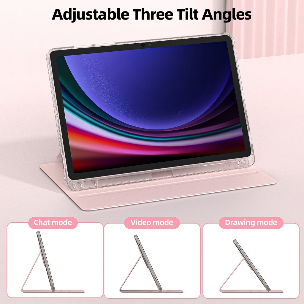 360-degree Rotatable Screen: The TPU backplate is designed with a swivel in the middle, allowing a 360-degree rotation around the middle fix point to get flexible landscape and portrait viewing, which offers a pretty convenient use experience for watching movies, working, chatting, and typing. Stable & Anti-bending Support: Due to the X-shaped bearing structure on the backplate, which equally distributes the pressure, the case solves the tablet bending condition after prolonged use. Moreover, its large-area and triangular support structure makes it more stable than the multiple-point supporting structure. All-round Drop Protection: Its thickened TPU frame with four airbag-like round corners can minimize damage from accidental drops or crashes. With a 1:1 cutout design, the cover can provide all-round protection for your device and extend its lifespan. Humanized Designs: With a 3-groove design to enhance stability, you can adjust its tilt angle in 3 levels to meet your viewing needs. There is a pen slot on the bottom for storing your stylus pen when it is not in use, preventing loss and mess. Waterproof & Cleanable Surface: Made of premium semi-silicone material featuring a pleasing tactile sensation, the protective cover is smooth, tough, and waterproof, which ensures it keeps dirt and dust away and makes it easy to clean the surface.