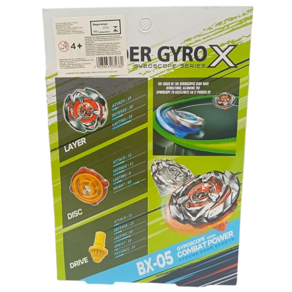 Beyblade Thunder Gyro X BX05 com Lançador Peão de Batalha - Toys Import J24207