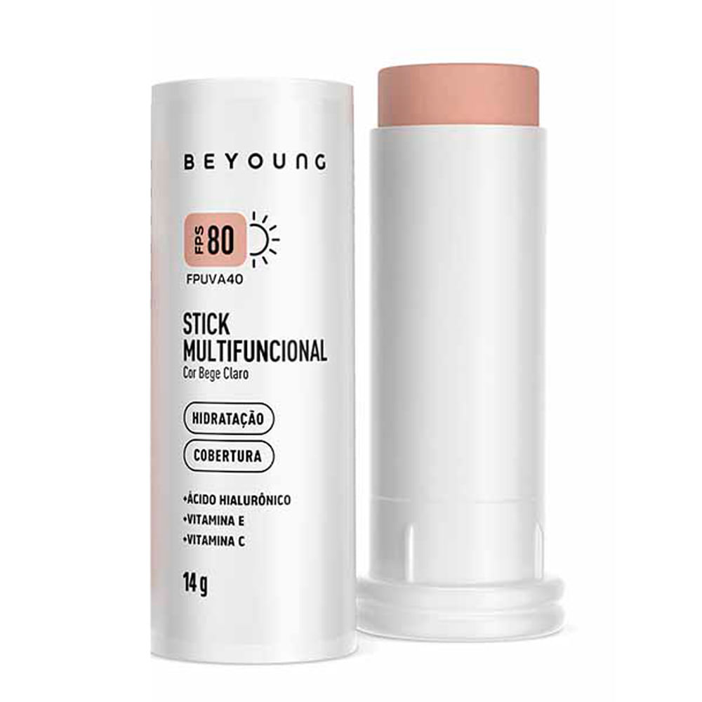 Stick Multifuncional Beyoung FPS 80 Cor Bege Claro 14g O Stick Multifuncional Beyoung FPS 80 na cor Bege Claro é o aliado perfeito para quem busca praticidade e eficácia. Combina alta proteção solar F