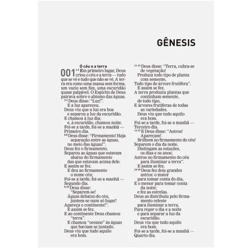 DESCRIÇÃO A Bíblia A Mensagem - Letra Gigante - Capa Luxo Vermelha apresenta uma linguagem viva, moderna e profundamente envolvente, ideal para quem deseja compreender a Palavra de Deus com clareza e emoção. Essa versão, traduzida diretamente dos textos originais por Eugene Peterson, busca expressar as Escrituras em um tom conversacional, tornando a leitura mais próxima do coração e da experiência cotidiana. A edição de letra gigante oferece conforto visual, sendo perfeita para leituras prolongadas, devocionais e estudos pessoais. A capa luxo vermelha confere elegância e durabilidade, ideal para presentear ou colecionar. É uma Bíblia que transforma o tempo de leitura em momentos de reflexão profunda, renovando a fé com cada página. FICHA TÉCNICA Título: Bíblia A Mensagem - Letra Gigante - Capa Luxo Vermelha Autor: Eugene H. Peterson (tradutor e organizador) Editora: Mundo Cristão Idioma: Português Acabamento: Capa luxo (vermelha) Formato: 17 x 24 cm Páginas: 1.568 Letra: Gigante Edição: Atualizada ISBN: 9786555843682 PALAVRAS-CHAVE bíblia a mensagem, eugene peterson, tradução contemporânea, leitura fácil, bíblia moderna, letra gigante, capa luxo, bíblia mundo cristão, bíblia presente