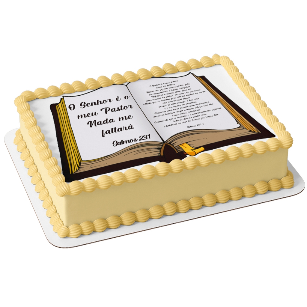 | Bíblia aberta papel arroz comestível para bolo 20 x 30 cm salmo 23 este produto | R$ 19,99 | — | 4.8/5 | 6 |